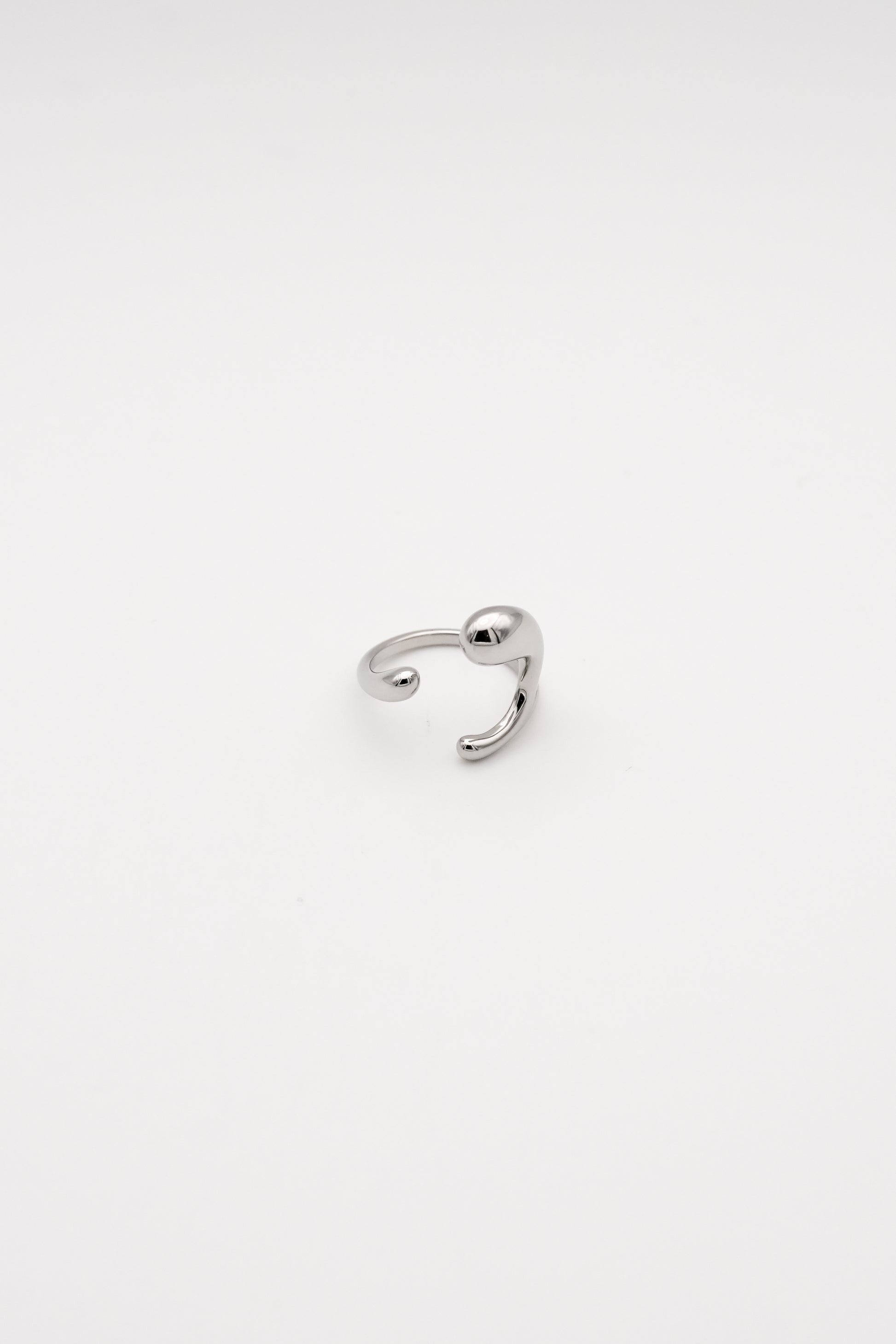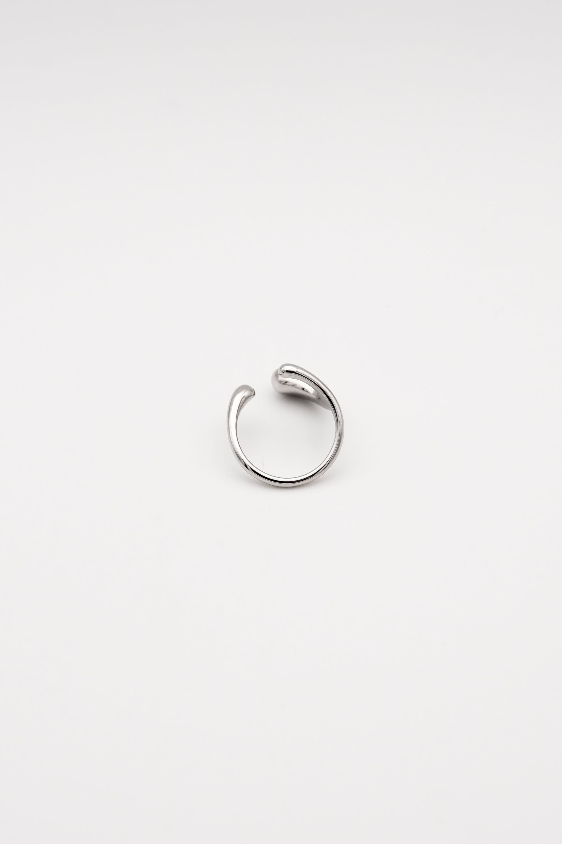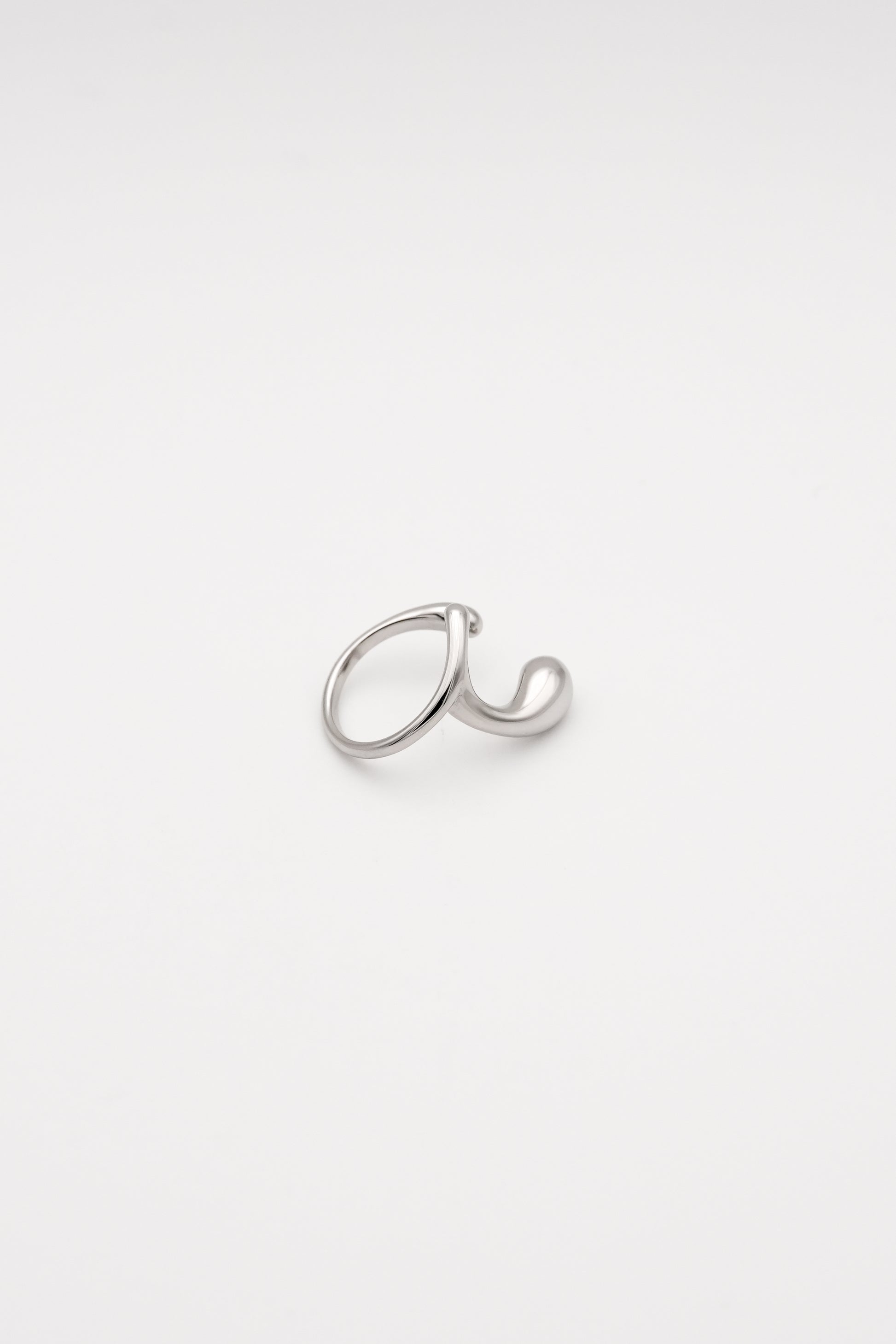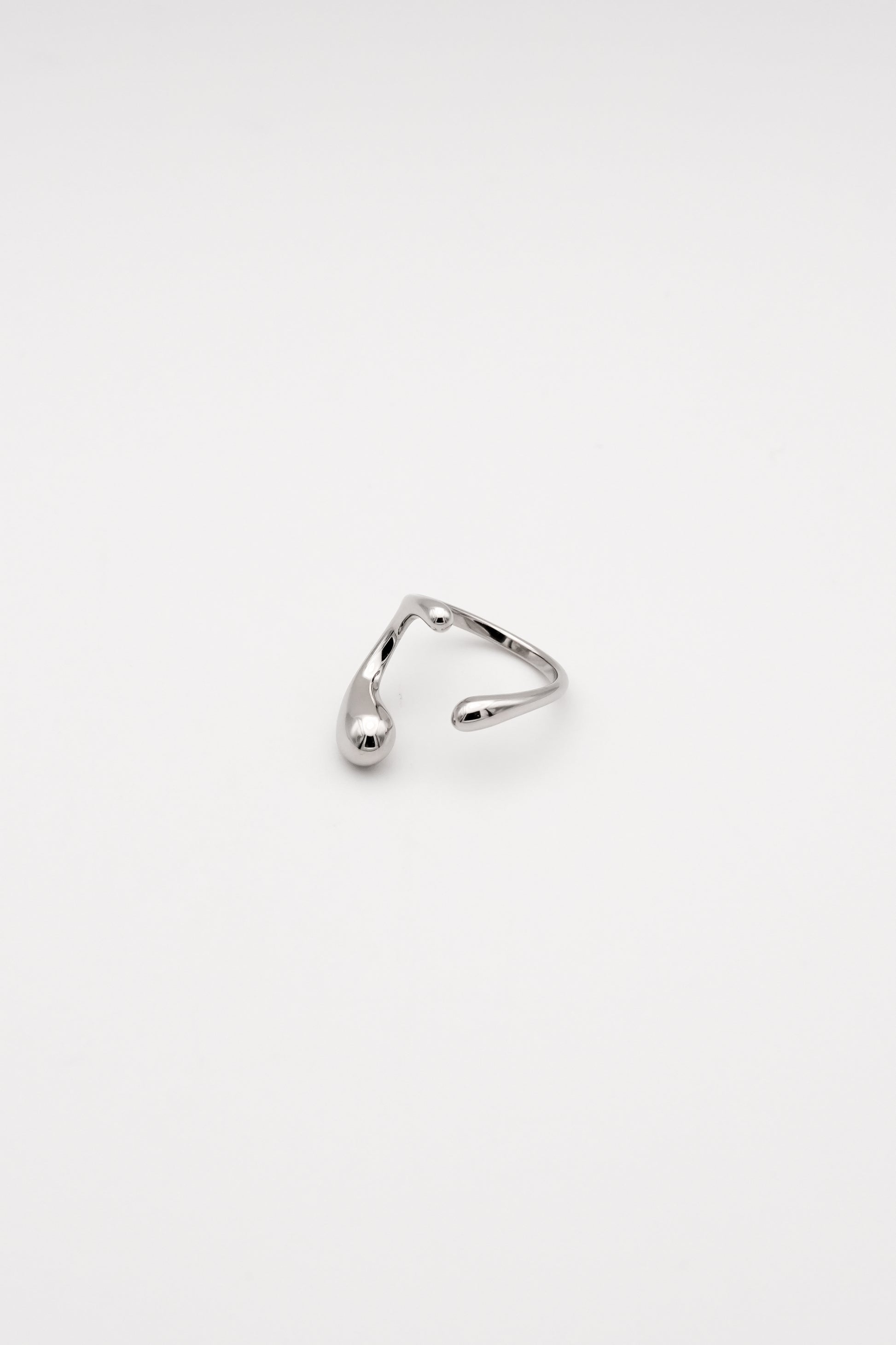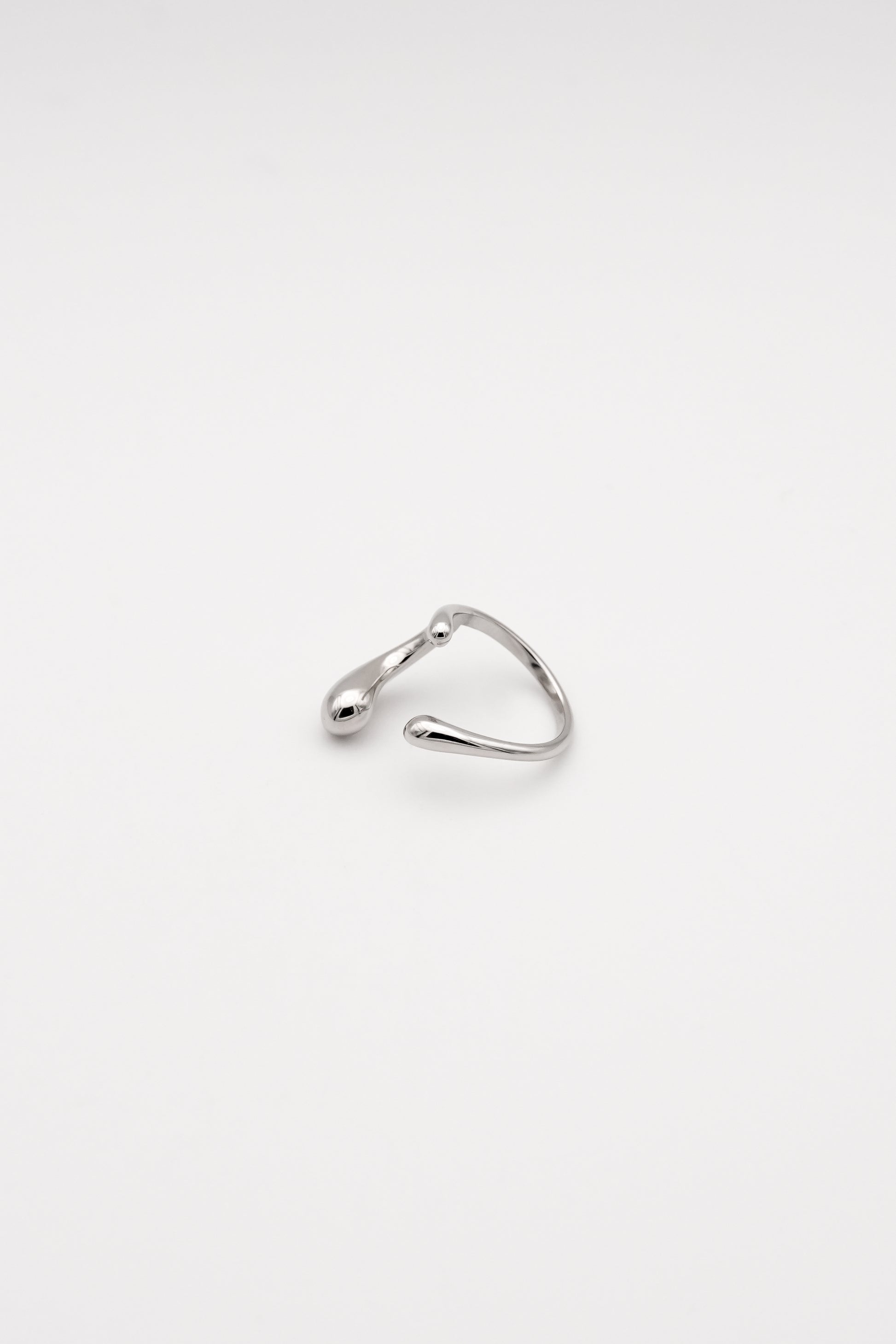 流れるようなラインと、しずくのように丸みを帯びた先端、有機的なデザインが特徴のオープンリング