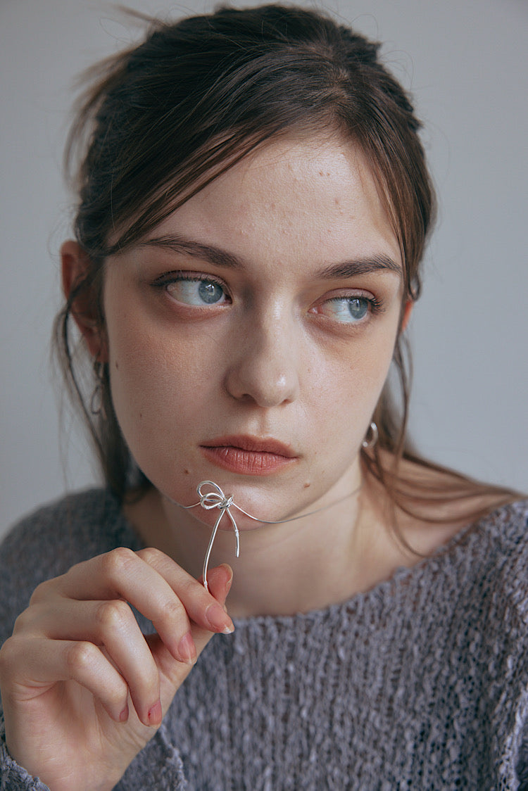 大人の可愛さを叶える少しひねりを効かせたシルバーネックレスです