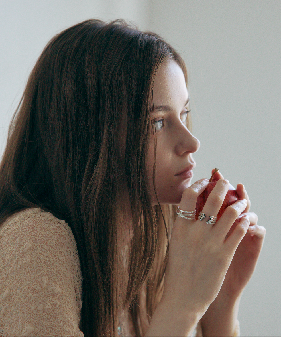 スタイリングの締めくくりに、指先にニュアンスを添えてくれる、そんな存在感あるリング。単体での着用はもちろん、他のリングとのレイヤードもおすすめです。