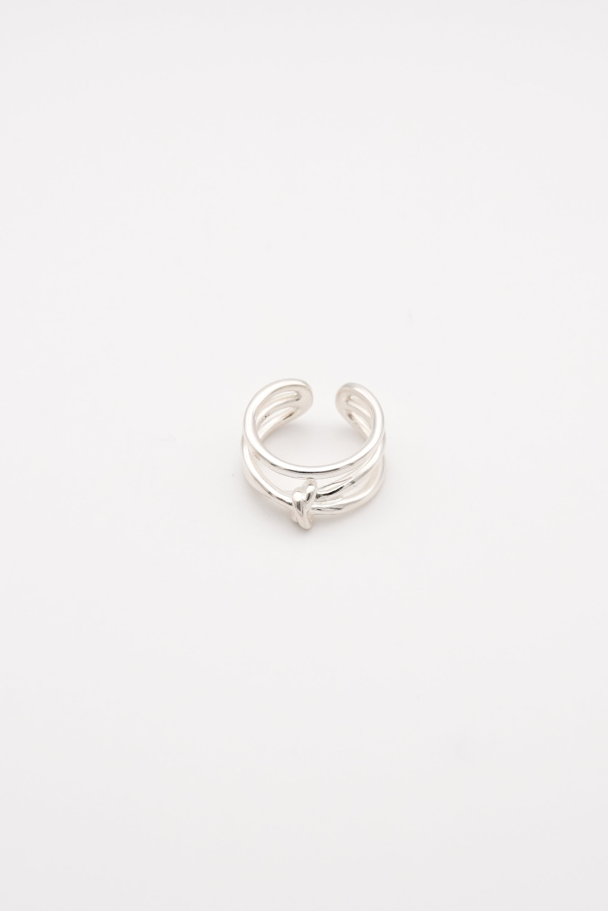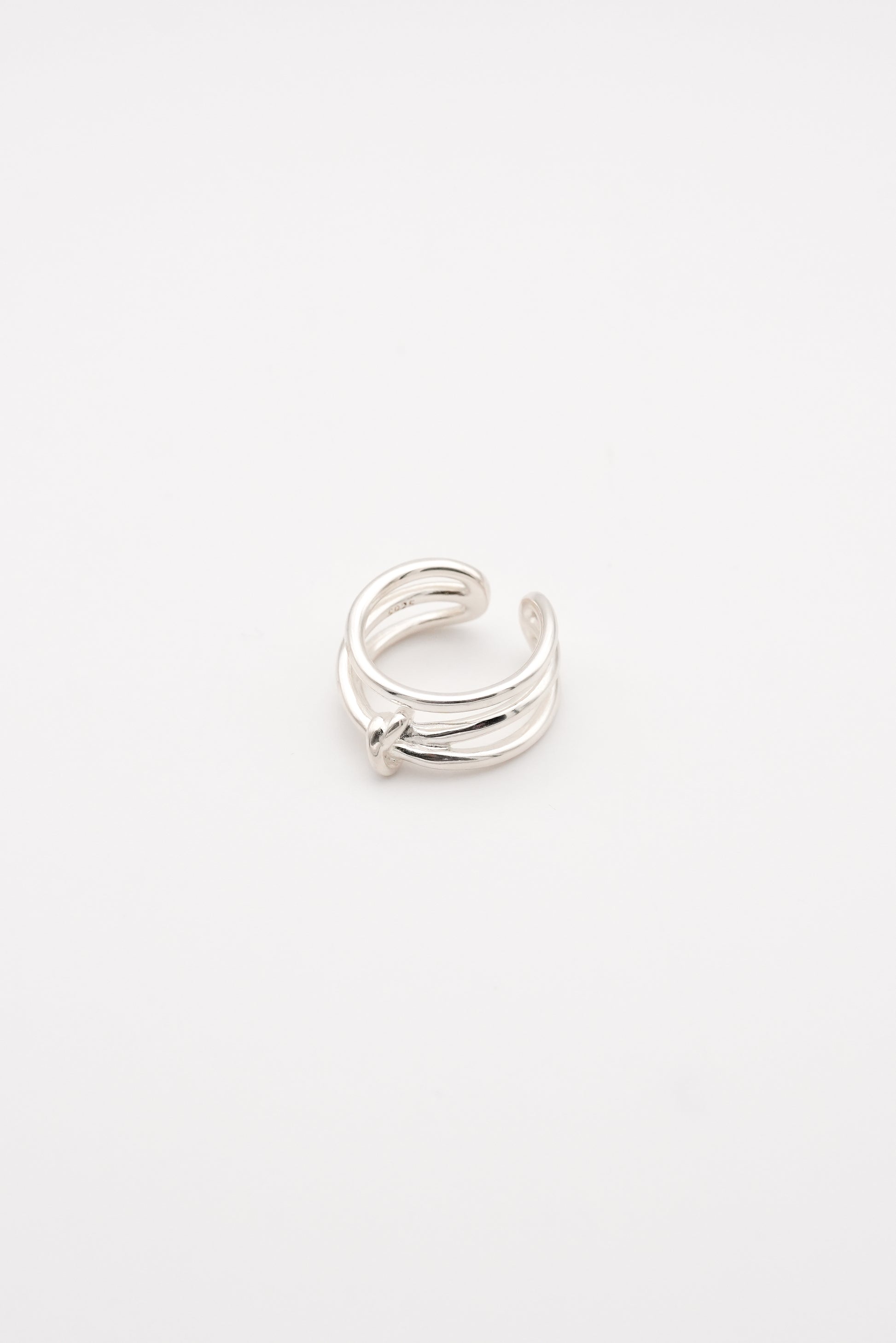 3本のラインが重なり合いながら、中央にさりげなく結ばれたノットモチーフがアクセントとして際立ち、シンプルな中にも動きのあるデザインに仕上がっています。