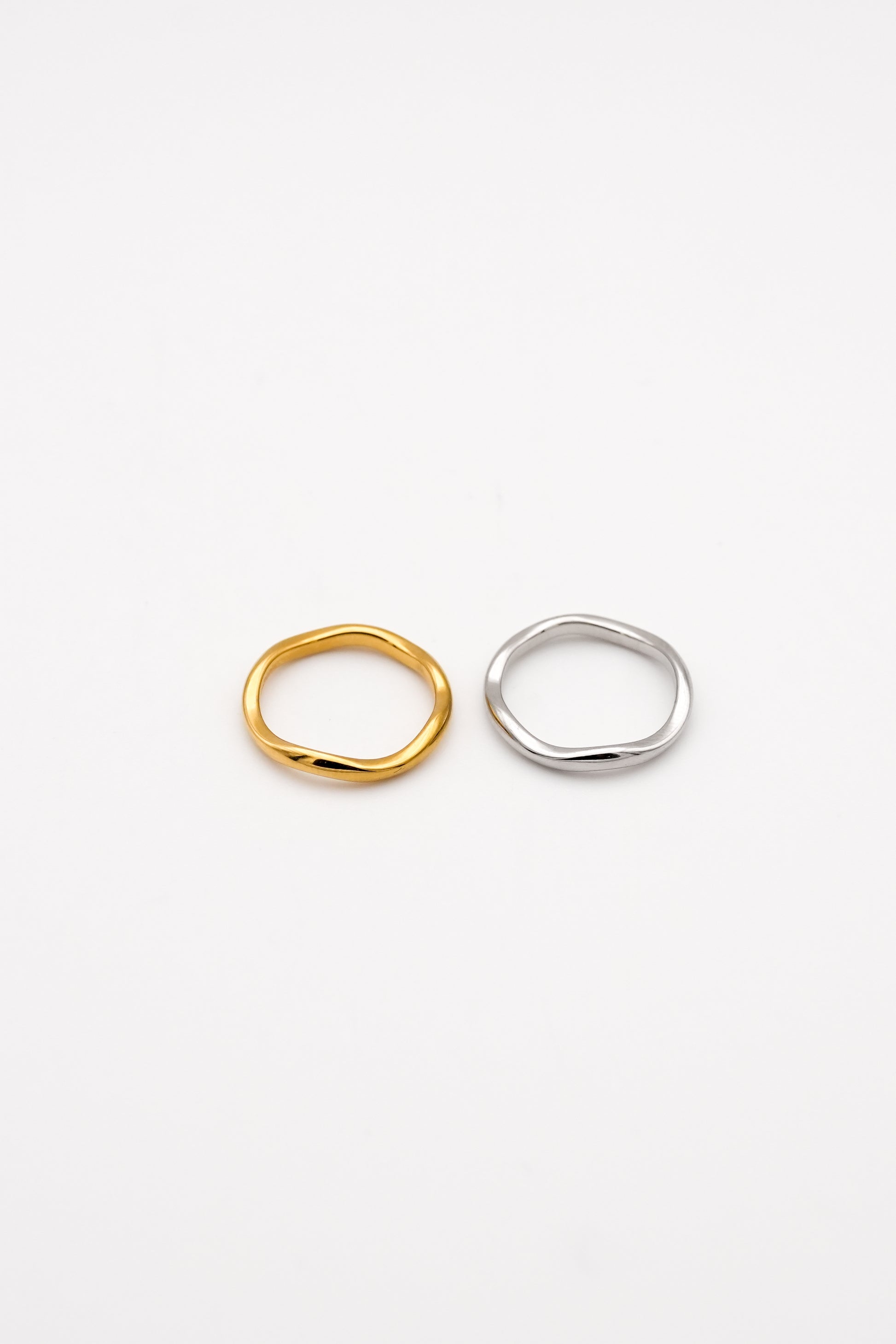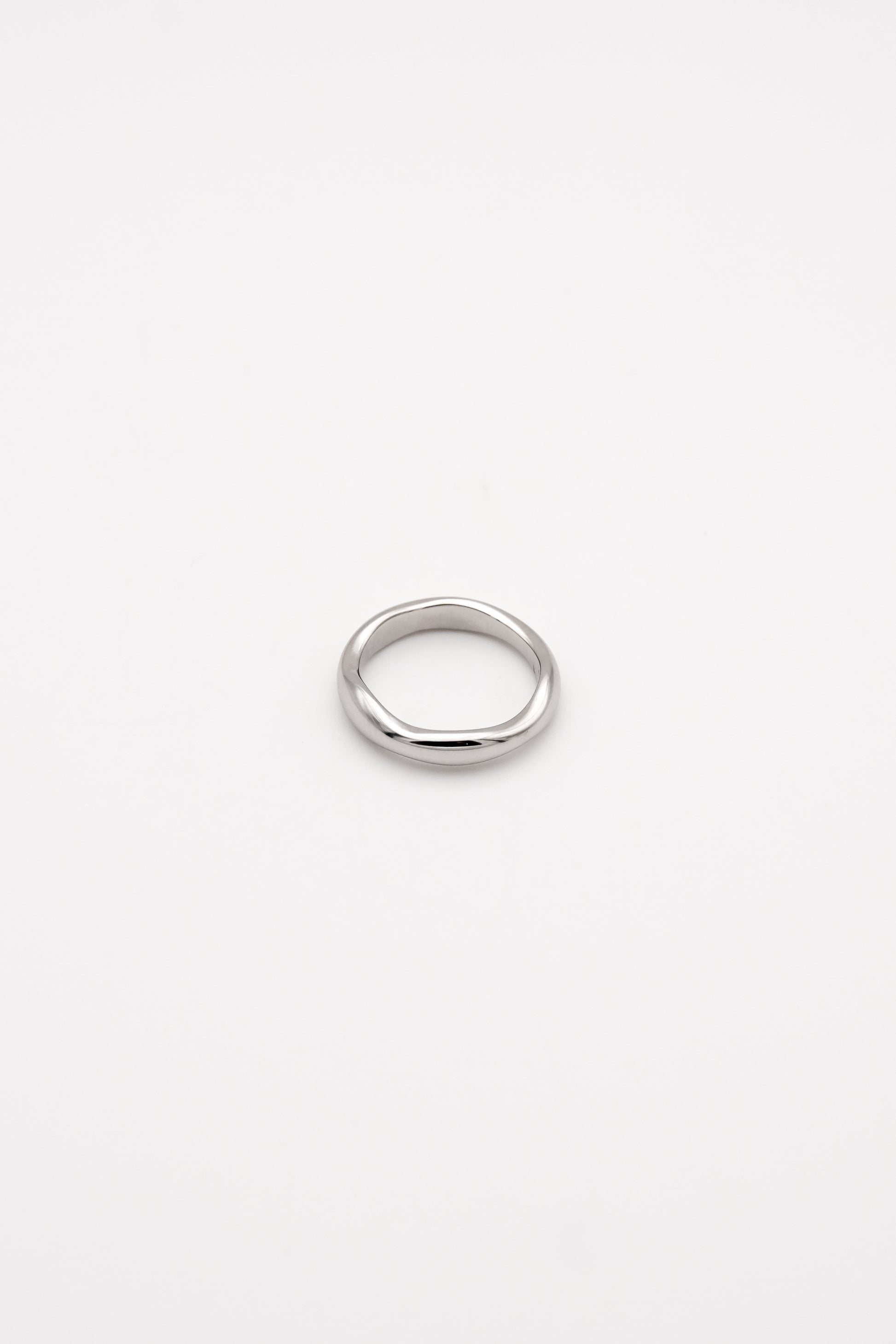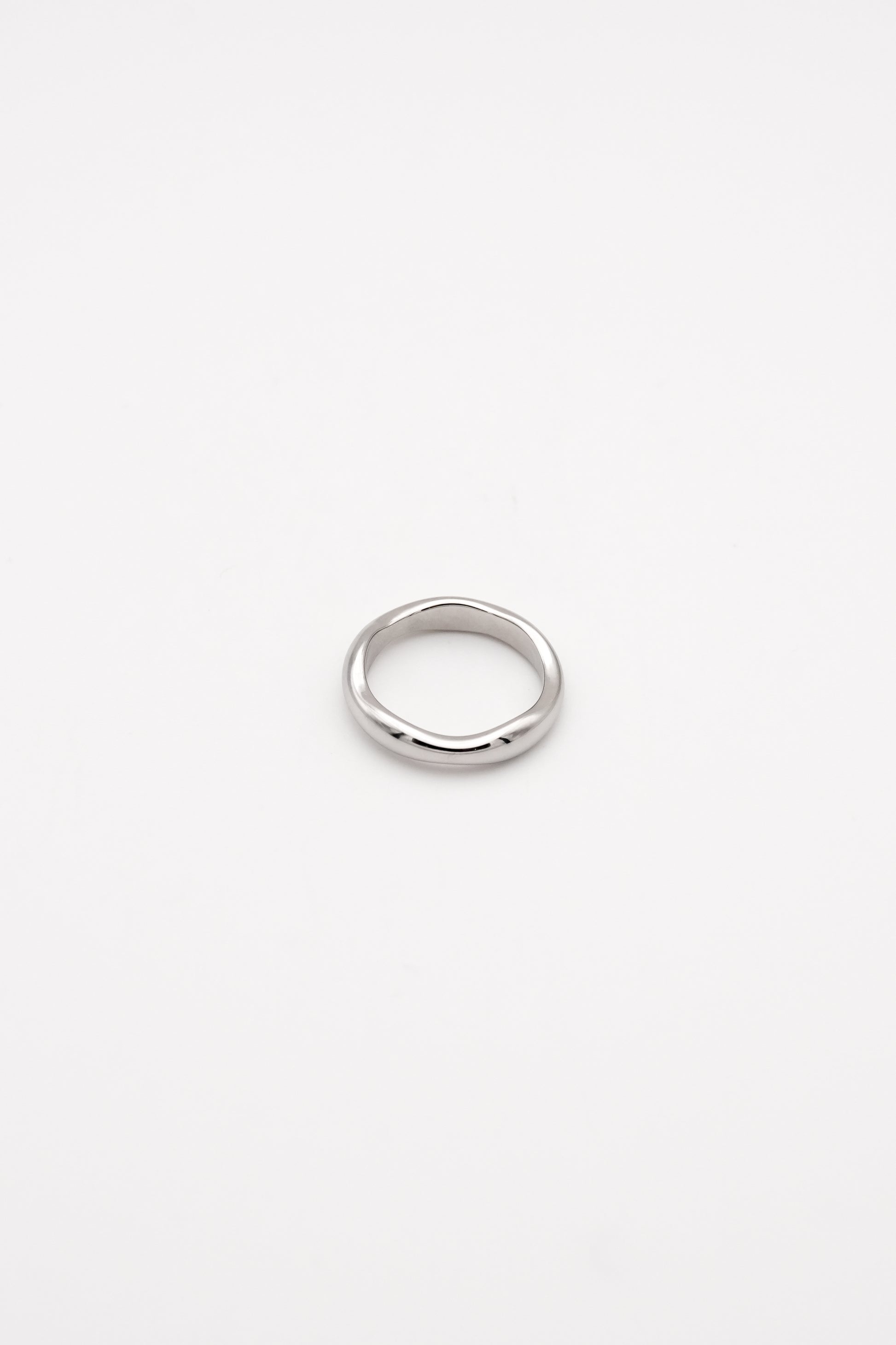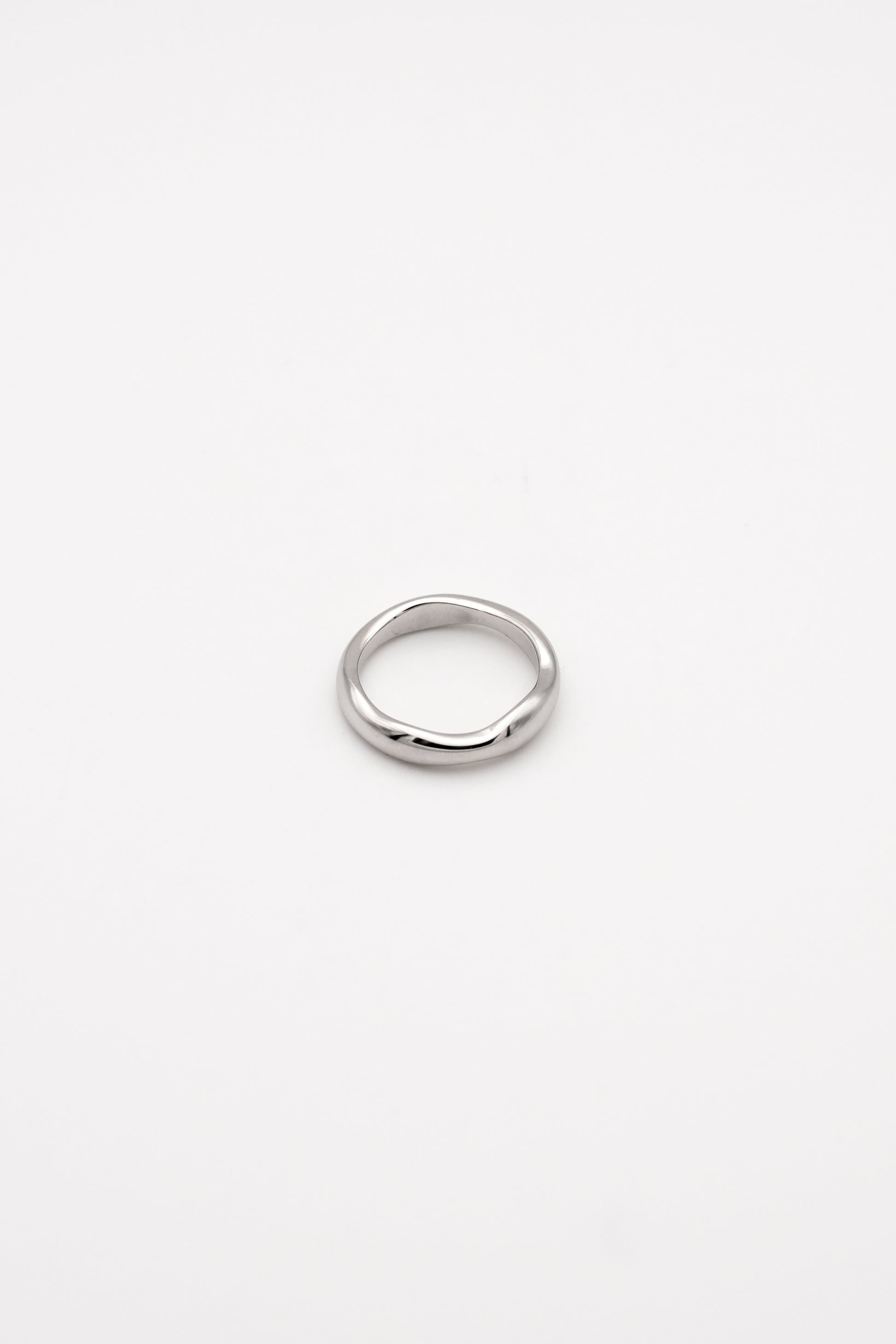 シンプルなフォルムながら表面にわずかに施されたうねりと、指にやさしく沿う細身のラインが特徴のリング