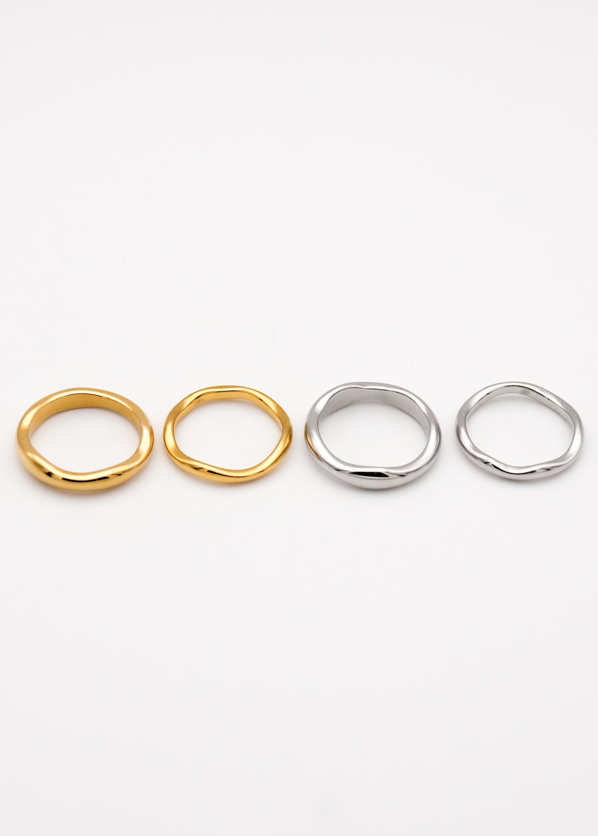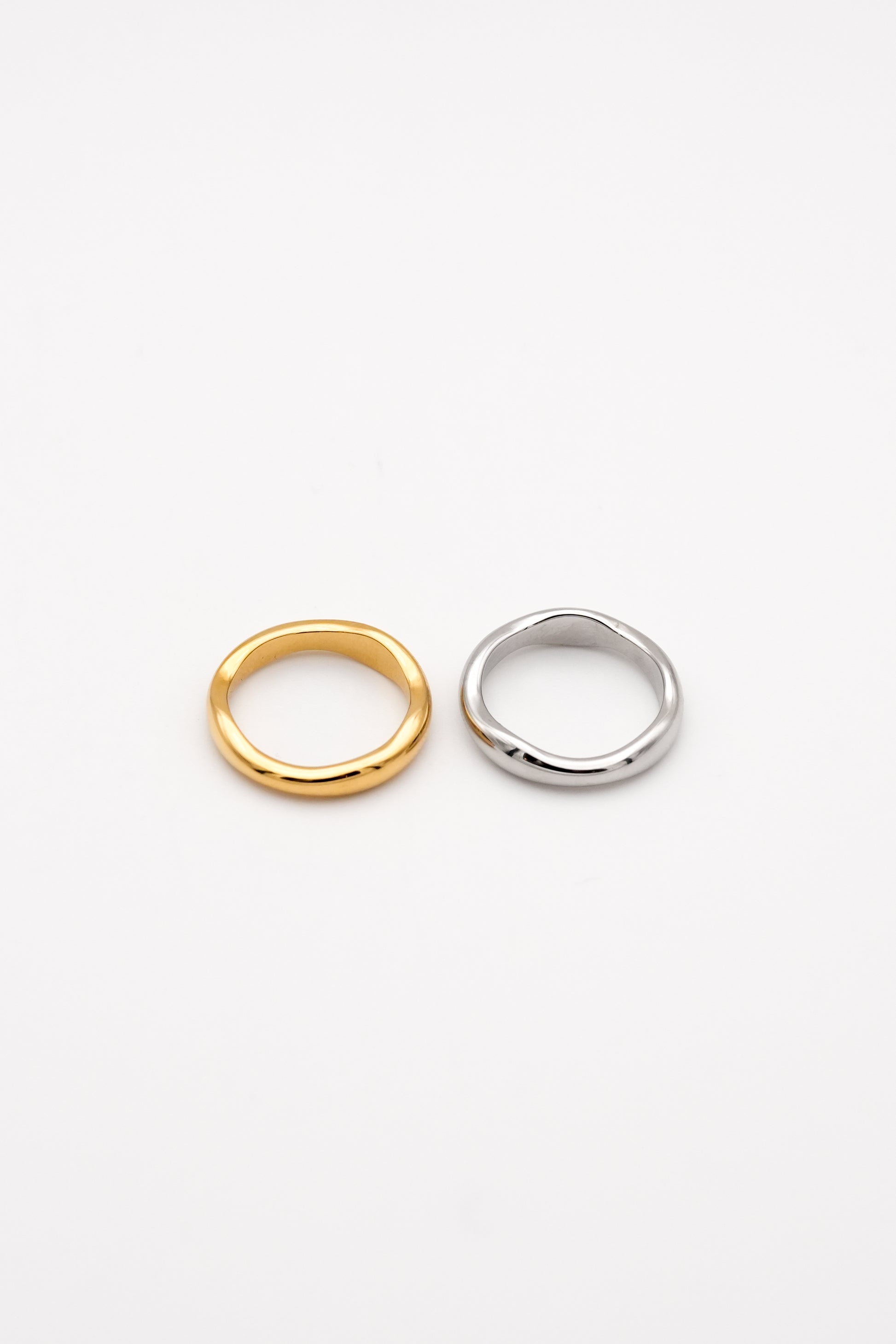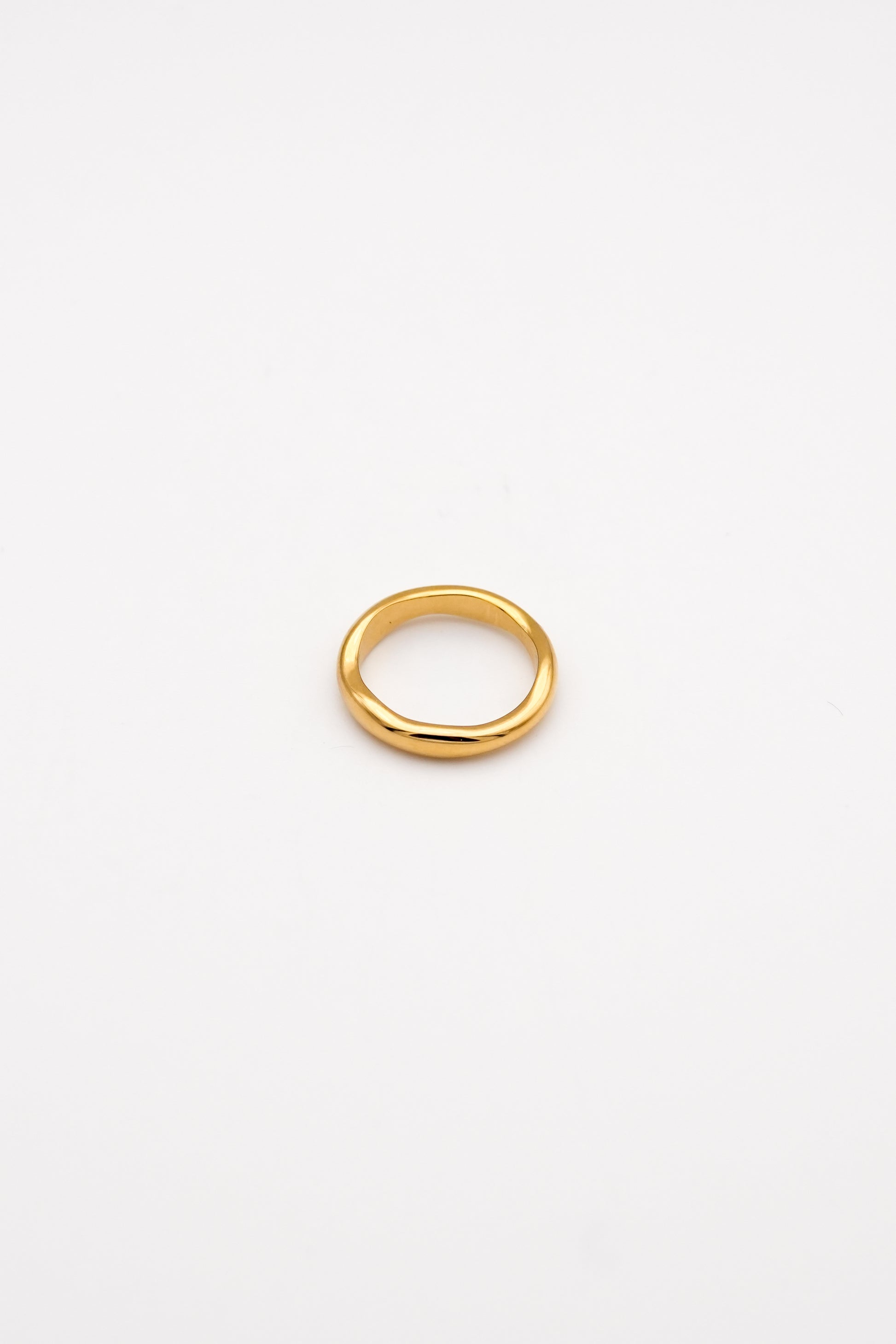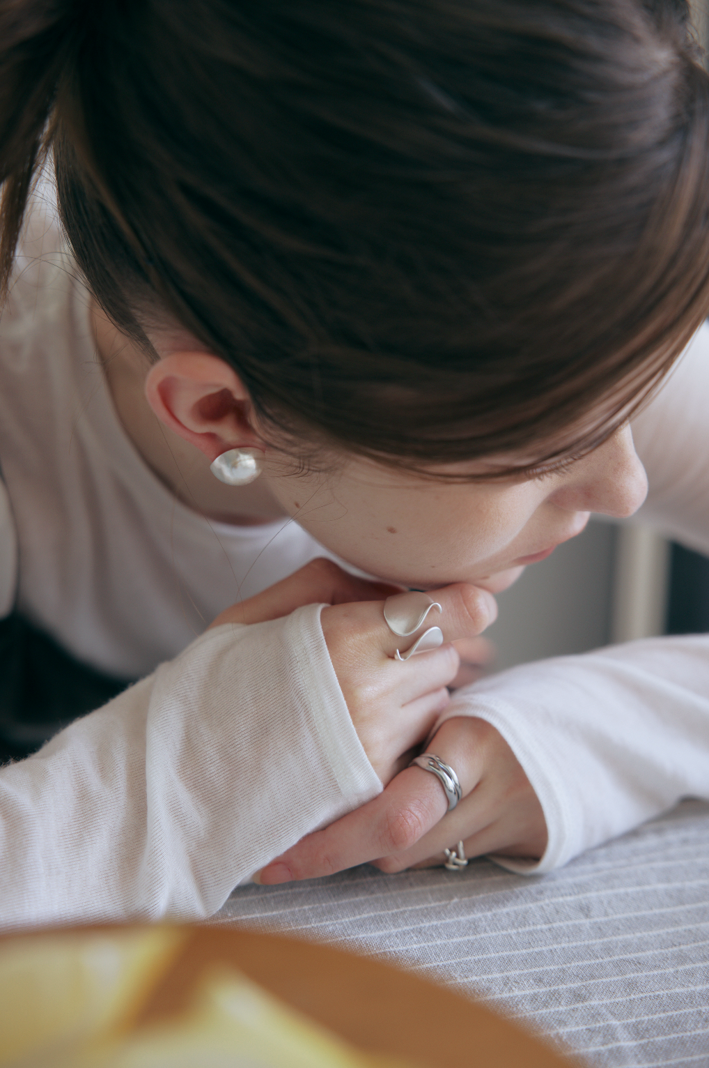 シンプルなフォルムながら表面にわずかに施されたうねりと、指にやさしく沿う細身のラインが特徴のリング