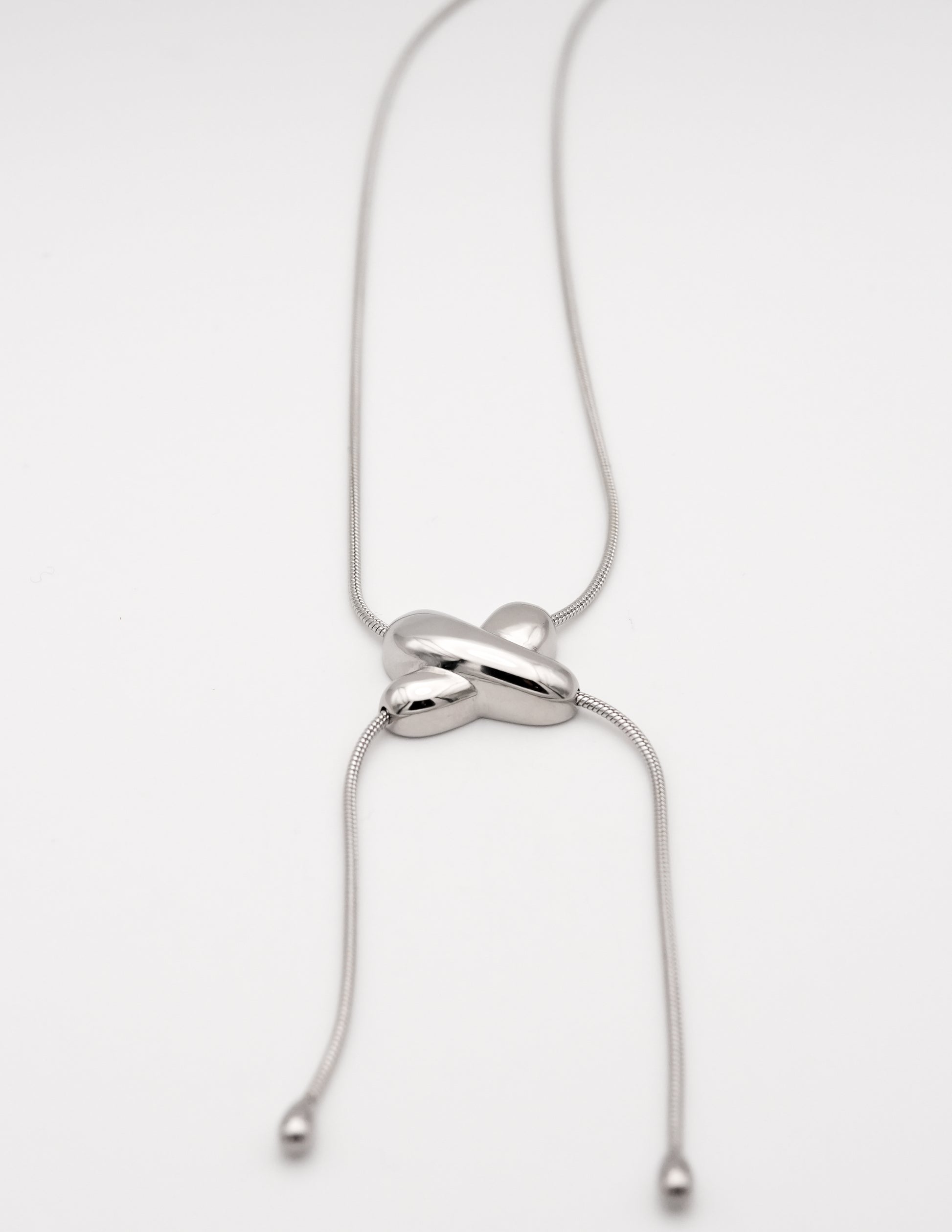 金属が溶け合い、結び目になったかのような、彫刻的なトップモチーフが印象的なネックレスタイ