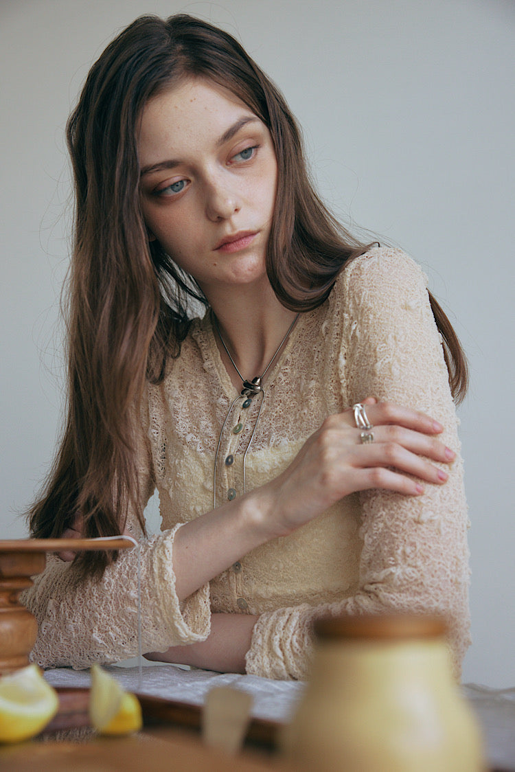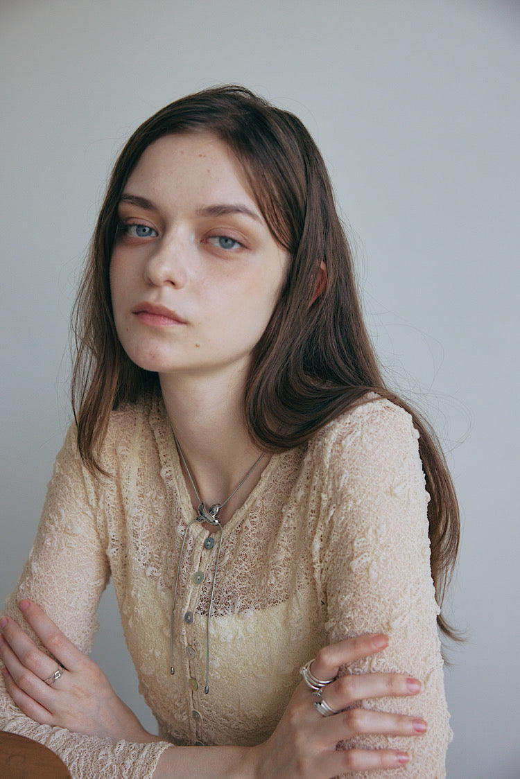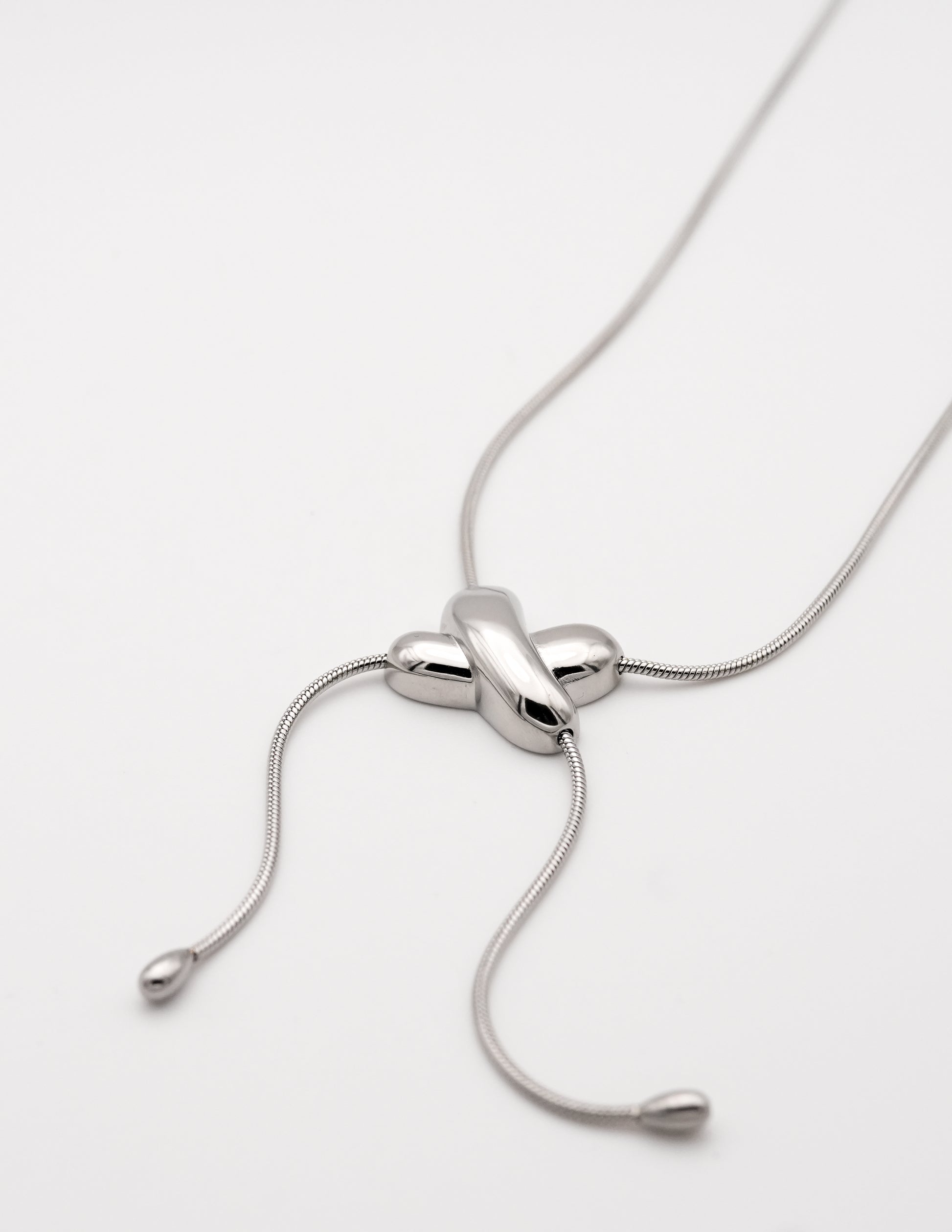 トップ部分は、2本のスネークチェーンをクロスするように通し、モチーフの位置を自由にスライドして調整可能
