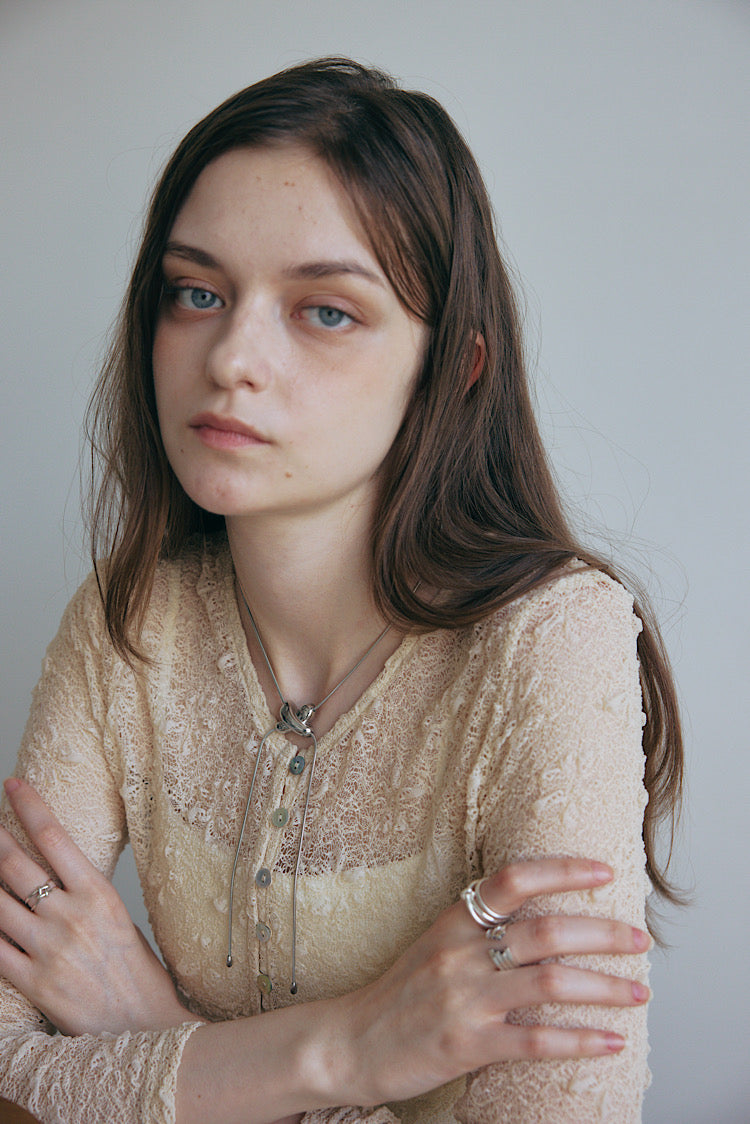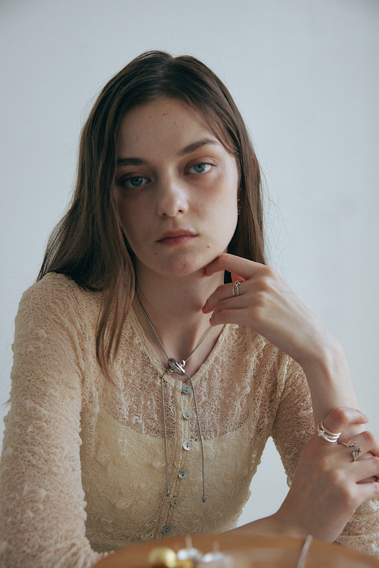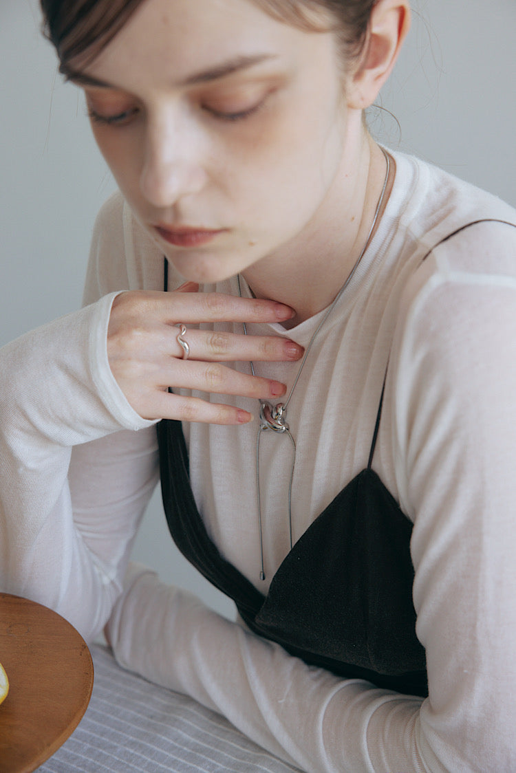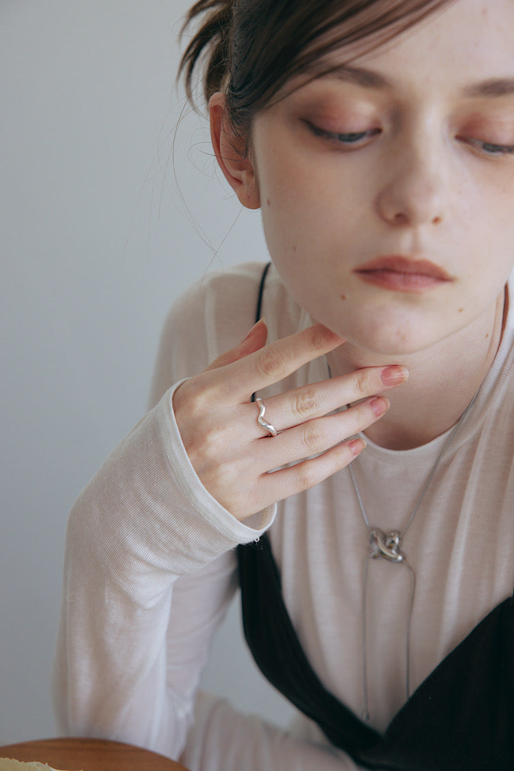 無機質でありながらどこか有機的な曲線は、静かに存在感を放ち、装いにアートのようなニュアンスを添えてくれます